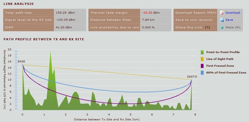 Esse obstáculo que o Alam apontou no trajeto do link é brabo e nem em 900 MHz vai dar certo por causa da pouca distância entre o obstáculo e o link.