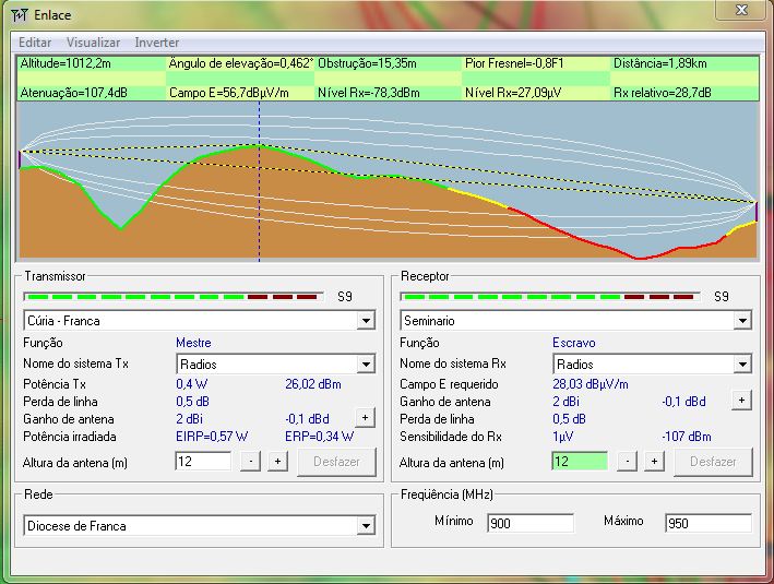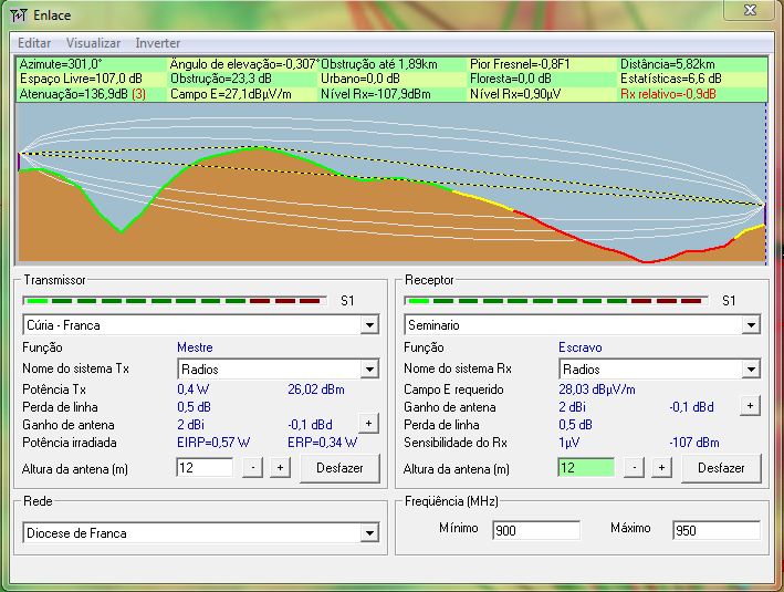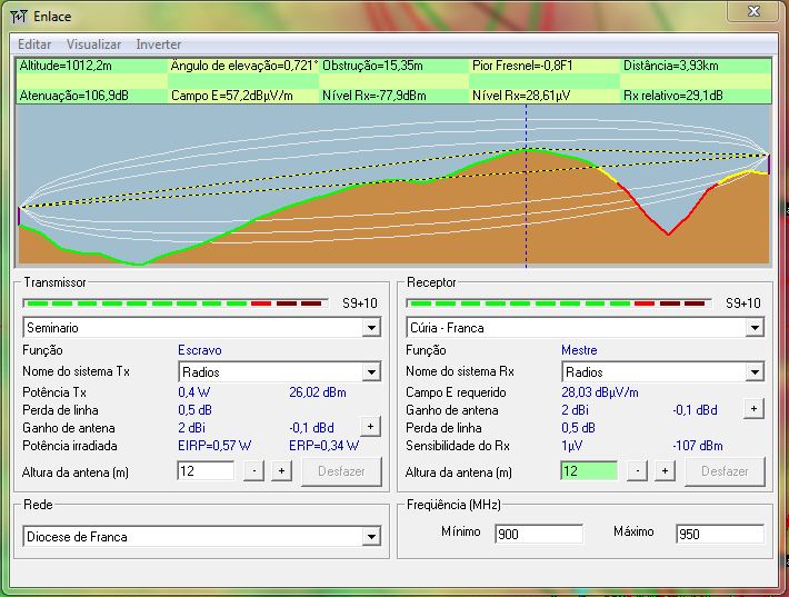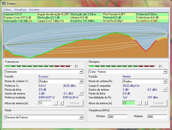 Tem uma obstrução de 15,35 Metros - Analisado pelo Radio Mobile.
