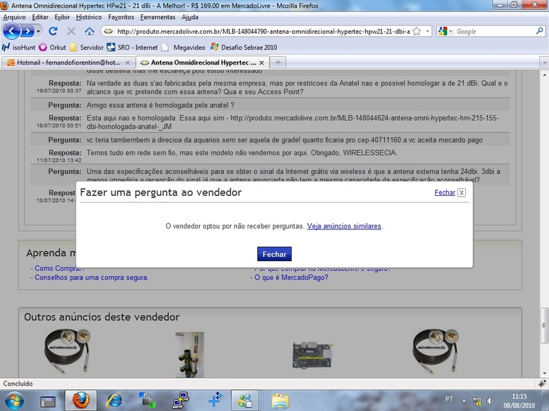 Cara nao compra da heypertec não, elas nao valem nada, comprei uma de 18.5 dbi por ser homologada para substituir uma de 15 aqui, e não teve cristo que fizesse ela render, testei todos os canais, troquei pigtail, cartão, comprei pigtail hyperlink e nada, entrei em contato com o vendedor ele mandou outra exatamente com o mesmo rendimento, entrei novamente em contato e imagina só, agora ele nem responde meus emails. Quisera eu ter vindo perguntar ou ler os materias do forum antes de comprar essa bost...