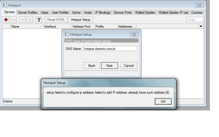 Navego blz, mas quando tento configurar o hotspot não consigo, me retorna esse erro quando chego na aba DNS name:
