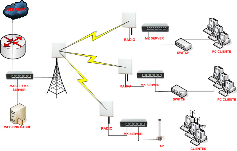 Pretendo colocar um server radius (MASTER MK SERVER) centralizado e varios hotspot (MK SERVER) distribuidos para gerenciar os clientes.