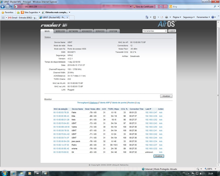 Segue abaixo as imagens referente a configuracao do roket m5. O problema é que a internet esta muito lenta.