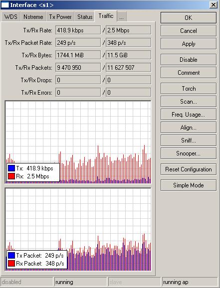 Ola pessoal sou novo aqui no forum estou com o seguinte problema tenho duas rbs 433 licença nível 4 configurada como bridg configurada em WDS ponto aponto com cartões (Atheros AR5413) e duas antenas de 27 dbi da aquário numa distancia de 2 KM os pings pingão 1ms no Maximo 2ms só que o problema é o seguinte tem hora que os pings ficão muito alto chegando a 1000MS e tem hora que fica um dia inteiro só dando ping de 1 a 2 no Maximo 4 MS essas rbs passa ums 12 a 20 Mega de trafego. Já troqueis as rbs e o problema continua o mesmo antes eu usava duas rbs 411U licença 3 hoje eu uso a 433 licença 4 elas estão configuradas para passar 54 Megas e em 5G Agradeço desde já pela ajuda Obrigado !!!