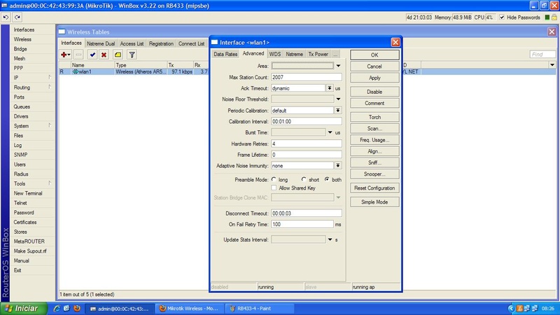 Estou mandando as imagens de configuração da rb433 em ap-bridge, para voces darem uma verificada se estar correto ou se tenho que fazer alguma modificação.
