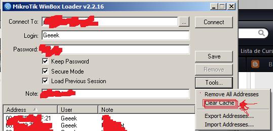 No Winbox click em Tools... > Clear Cache...