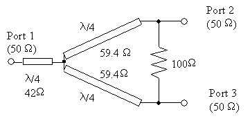 Acontece que Divisores/Combinadores tipo Wilkinson  em caso de necessidade podem ser feitos com certa facilidade com 3 segmentos de λ/4 de cabo coaxial de 50 ohms e com um único resistor de 100 ohms que deve ser puramente resistivo na frequência em que será utilizado (reatância capacitiva ou indutiva 0).