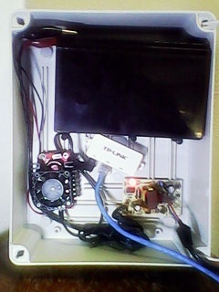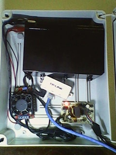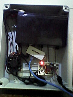Bom, se trata de uma caixa plastica Cemar de R$ 30 (Aqui no interior é caro), uma bateria 12V 7Ah de R$ 33 (Prefiro Unipower ou Rontek), um carregador importado de R$ 20 ( 12V 12 volt battery charger for scooter ATV dirt bike | eBay (Engraçado que comprei dele mas os que chegaram são de 1,6A e não de 1,2A como está no anuncio), um conversor DC-DC com saída ajustavel de R$ 26 (Step-up chaveado, DC-DC Converter Boost 10-32V to 12-35V 150W Step Up Voltage Power Supply | eBay ), e um adaptador P4>POE pra facilitar minha vida.