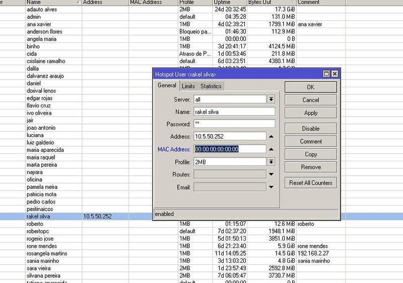 Sim cliente ISP entendi como funciona e já cheguei a colocar dentro de 1 escritorio que contratou 1mb, dai dentro do escritorio tem um range 192.168.2.0/24 dividindo para todas maquinas de la. O detalhe é que este outro radio está no prédio onde tem 8pessoas até agora usando e todas com velocidade diferente. 300k 600k 1mb. queria um modo de o hotspot pegar o mac de cada pc para eu poder controlar a banda individualmente.