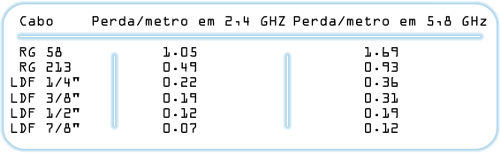 Se for usar cabo então tem melhor que seja RGC213, veja as perdas que eles tem