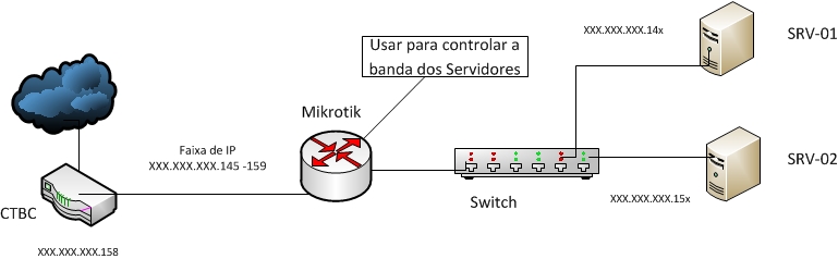 Coloquei a 1-CTBC e 2-Servidores em Bridge, dei um ip para a bridge e fiz o controle de banda para os ips.