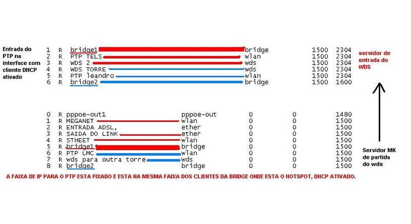 no servirdor de Saida eu coloquei a Interface do PTP dentro da faixa de Ip dos clientes hotspot com um IP fixo, e essa interface esta em outra bridge. criei um DHCP para ela. e na interface de saida acrescentei um DHCP CLIENTE para a interface do PTP de entrada. ate ai nao deu nada!
