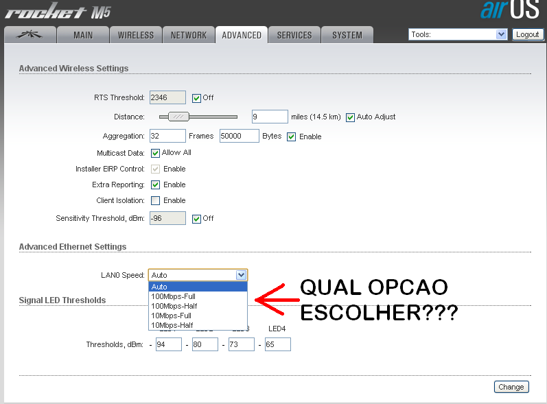 No (ADVANCED) deixei como LAN0 Speed: AUTO, qual voces acham melhor deixar? Obrigado por enquanto.