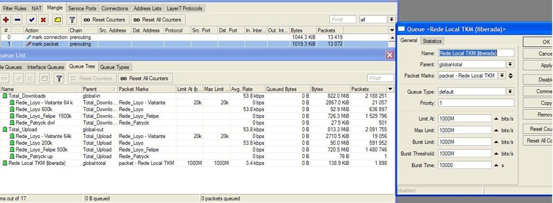 Quando configurei o QOS + PCQ (Queue Tree) joguei a regra principal no Global-in para Download e no Global-out para Upload. Agore preciso limitar somente a Internet e não a rede local. Como está hoje (vide fotos) ta limitando TODO o trafego da rede, ta funcionando perfeitamente, mas gostaria de limitar só a internet. Alguém tem respostas? obg