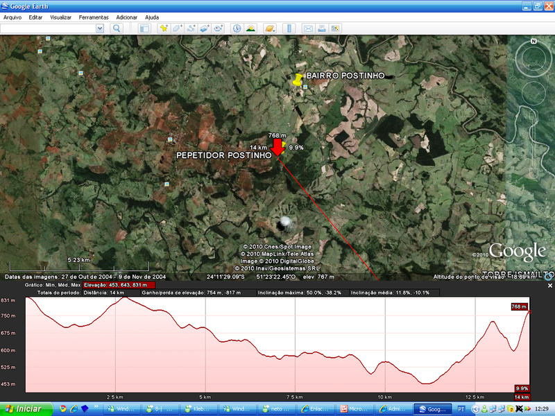 Vai aqui minha colaboraçao para o forum, acabei de fechar um enlace de 14 km com uma pequena obstruçao da zona de fresnel. Equipamentos usados foram ubiquiti airgrid 27 dbi. Créditos para nosso amigo colaborador do forum PAULO KLEBER CUNHA - Engenheiro em telecomunicação, pois foi ele que me deu a dica dos equipamentos Segue anexo prints.Lembrando que no ponto de 831 mts de altitude tem uma torre de 24 mts e na outra ponta uma de 2,5 mts.