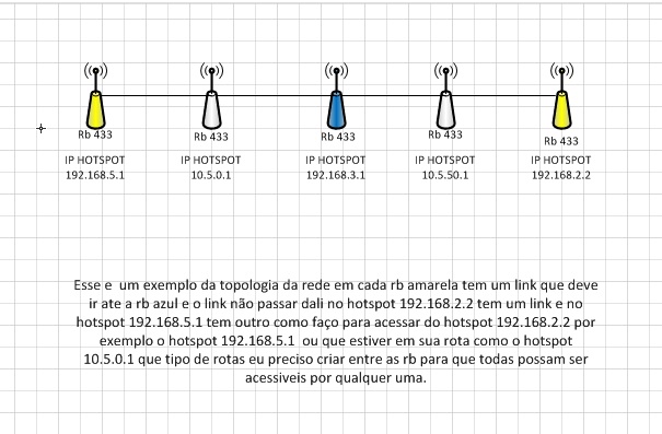 Tambem pensei nisso, seria ate mais facil pois to quebrando a cabeça e buscado soluçoes de roteamento desse tipo aqui no site e ate em site do forum do mikrotik se poderia me orientar em como fazer ou me mostrar alguns lugares onde eu poderia aprender, não to pedindo receita de bolo so uma forma de fazer pois preciso muito aprender como criar rotas pois sei que vai aparecer em diferentes situações que eu ainda vou usar para interligar redes diferentes no meio do caminho da rede e ja ta me surgindo algumas desses tipo.