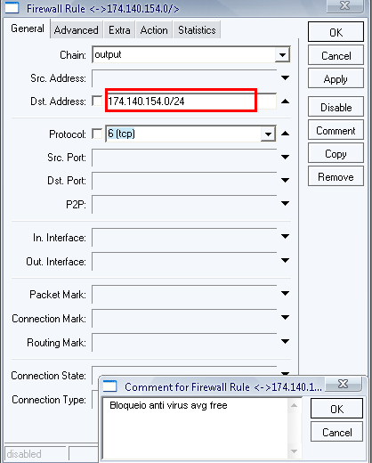 Sempre quando criar uma nova regra modificar o ip marcado de vermelho pelo servidor do antivirus