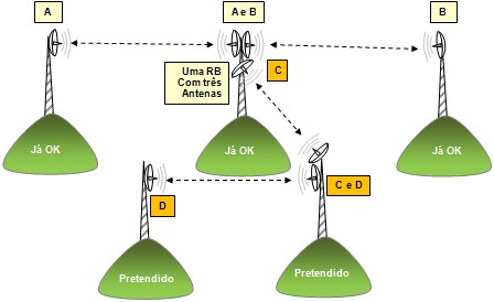 Essa terceira antena iria fazer bridge (ponto) com o mesmo ponto inicial A, que seria de onde parte toda a minha internet.