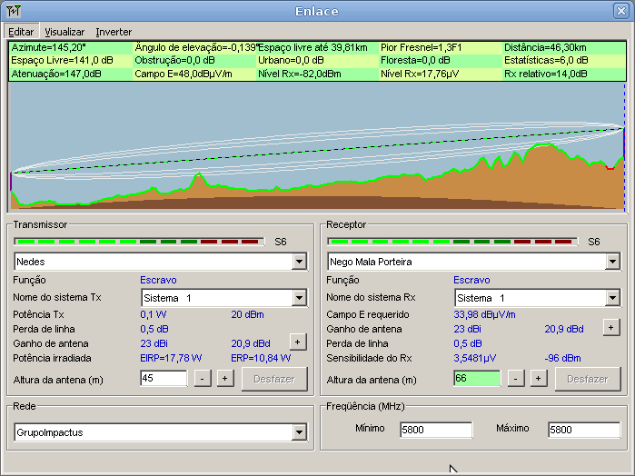 As alturas das torres são essas que estão na imagem, 45m e 66m, visada 100%, consegue fechar com cartão mikrotik R52hn e antena 32dbi, só mandar as cordenadas no GPS e boa!