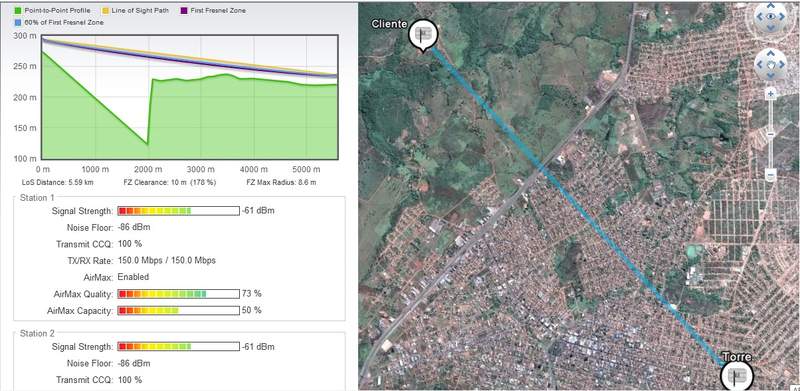 Os programas de cálculo de enlace consideram apenas o terreno. Tem que considerar também obstrução por vegetação e isso pode resultar em obstáculos de 10 a 40 metros entre um rádio e outro que o programa não considerou.