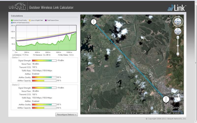 ..BEM, fiz um novo teste no (LINK CALCULATOR) da ubiquiti e apenas elevei a torre da STATION 1 para + 1 metro e o resultado foi a seguinte: