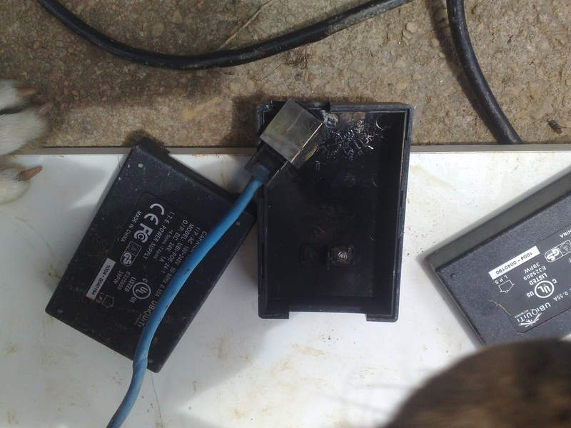 qq eh essa cx de madeira? cade o aterramento? cade o cabo de rede blindado? eo os conectores rj45 blindados? ta tudo errado, vai queimar toda vez q bate um raio perto.