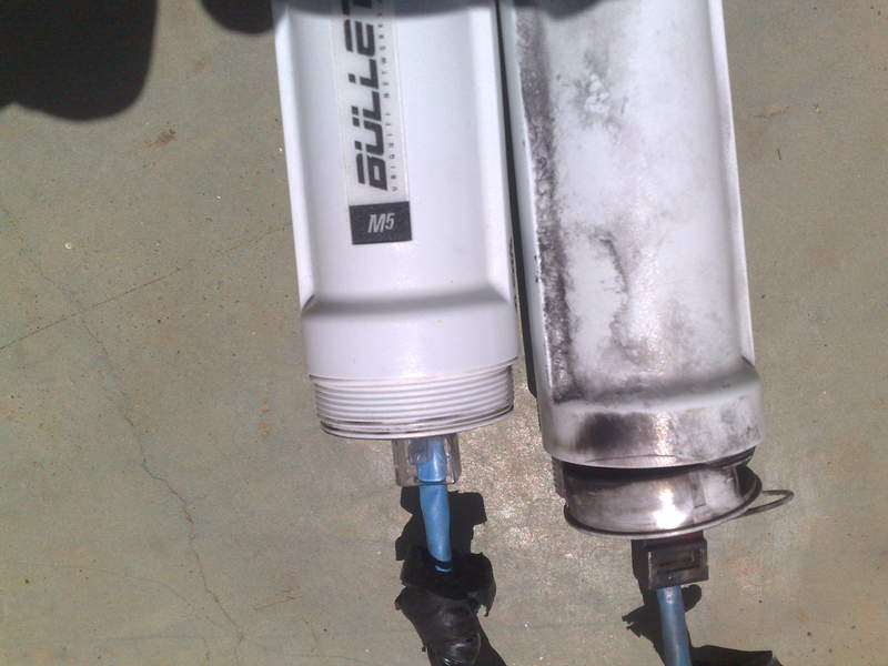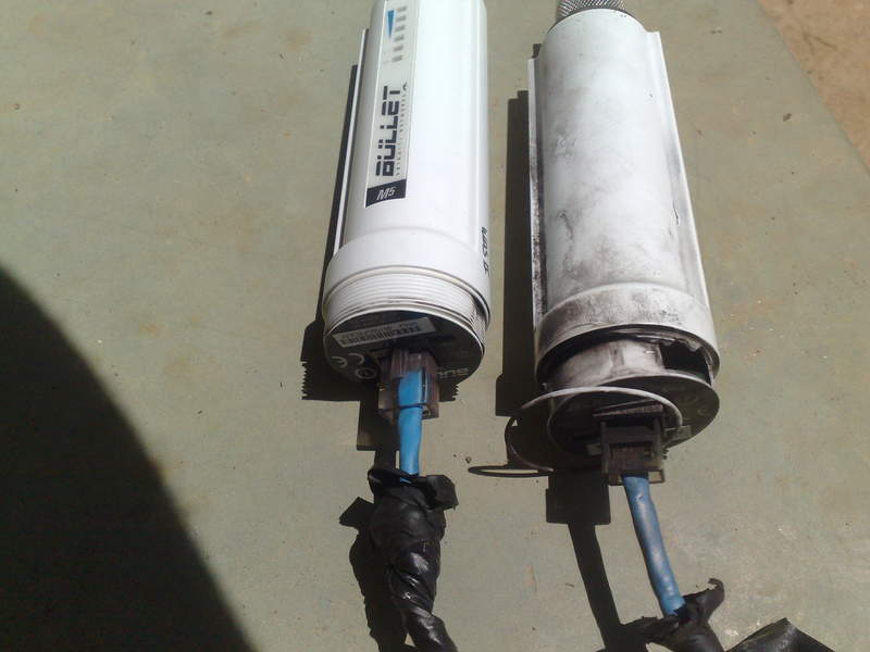 Fiz um PTP de 65km com 2 retições devido algumas deniveis do solo, em uma delas em um top de um planalto fico uma torre em uma casa, sugeri ao cliente pra fazer aterramento com desaclopador ele não quiz olha o que sobro do equepimanto no primeiro raio que o agracio com a chuva.