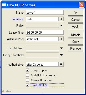 Agora em caso de vc quizer usar o dhcp do mikrotik com radius tem a possibilidade tb.