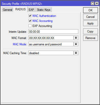 e em MAC MODE vc pode escolhe como "as username" ou "as username and password", a diferença vai ser no cadastro no radius.