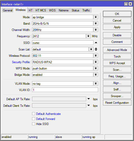 Obs. Pode ter q tenha esquecido algo devido a um grande tempo que não utilizo mais dessa forma aqui na nossa rede, mais acho q no contexto geral está tudo OK, essa é uma configuração que não necessita de criptografia, em caso de utilização da mesma deve se criar profile para cada tipo de criptografia.