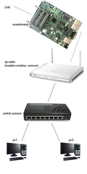 boa noite pessoal do under, sou iniciante, e estou aprendendo bastante com os tutoriais e dicas de todos, estou montando um projeto em minha casa para estudo, seria uma RB 433ah + AP RADIO + Switch comum, e 2 pc ligado ao switch.