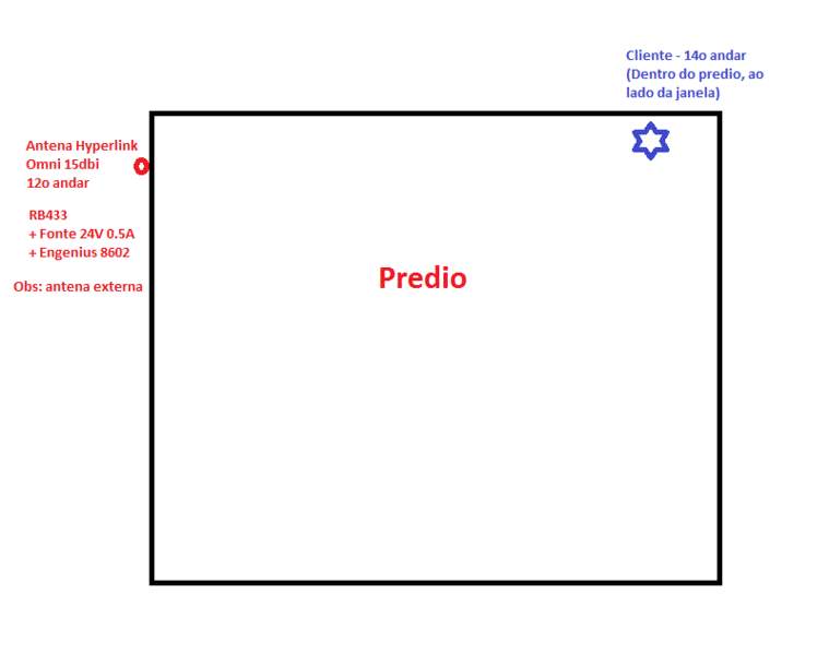 Montei uma rede em um prédio, porém o sinal está bastante fraco. Segue o croqui.