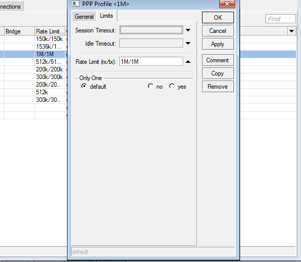 olá amigos preciso tirar uma duvida qual a função das opções da aba limts ppp\profiles\nome do profile\limts