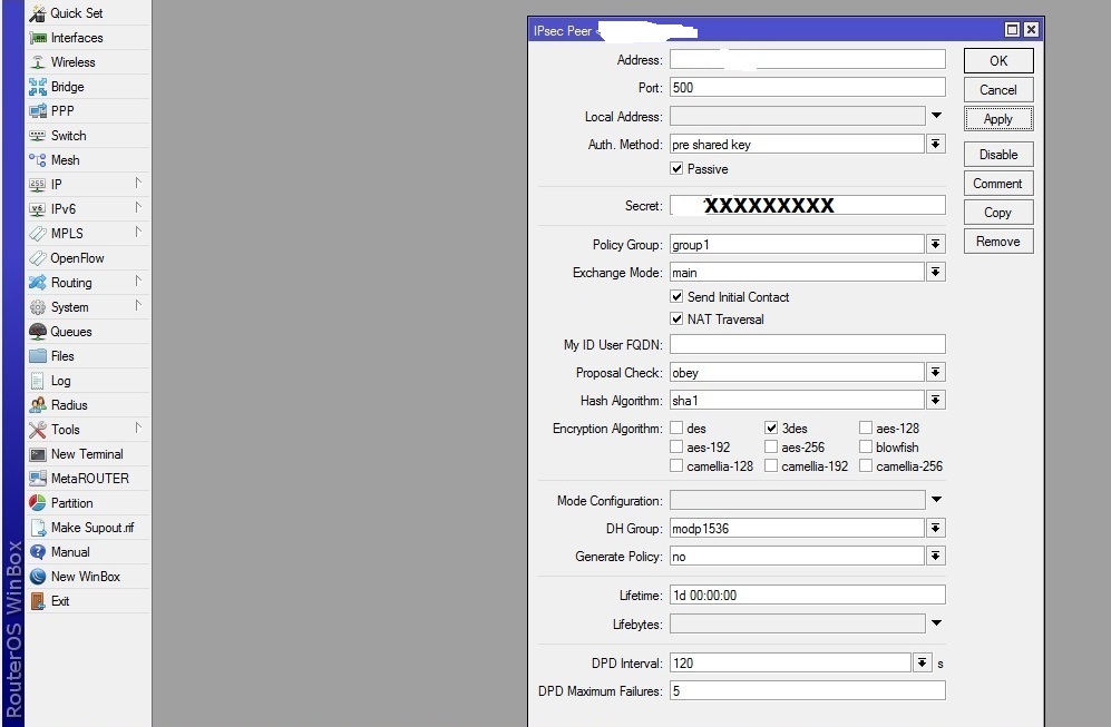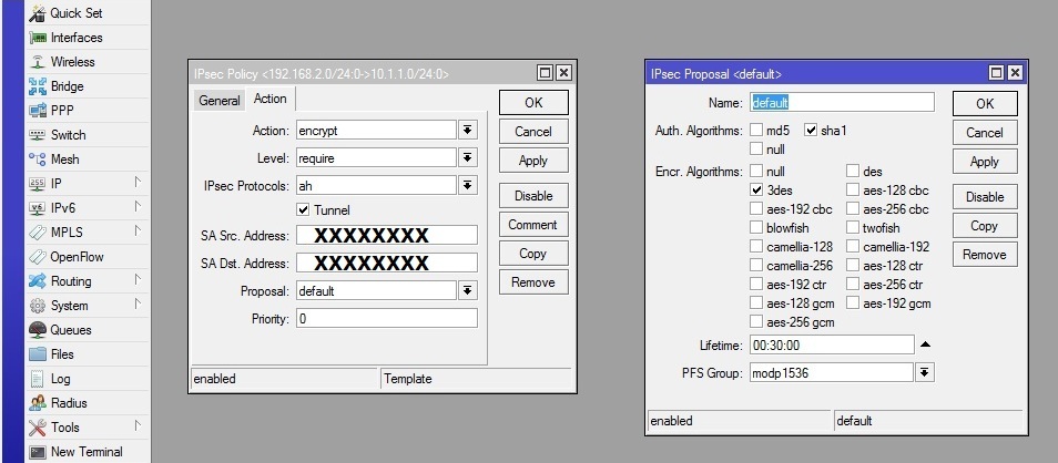 Ja estou a alguns meses tentando configurar uma vpn ipsec entre um Mikortik 750 e um fortigate 80c, alguem teria alguam informação de como poderia fazer isso?