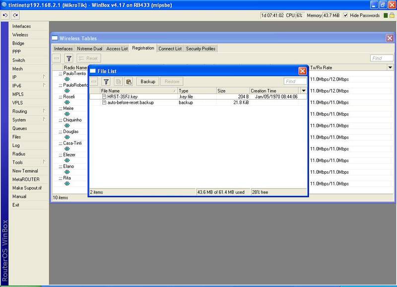 mklucasms , eu fiz o que vc disse mais minha rb433 durante o processo de colar os arquivos no file falhou e o problema de falhar foi por causa da memoria estava marcada 0% de memoria free como eu posso limpar essa memoria