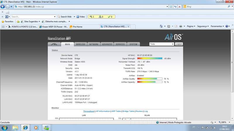 o enlace ja foi feito. fui de nanostation m5 segue as imagens com as estatisticas do enlace o nivel do sinal etc
