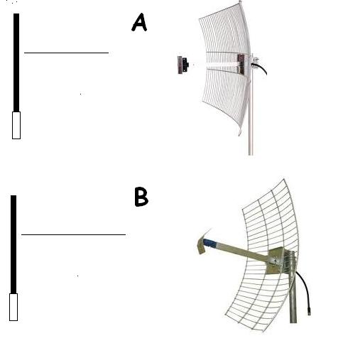 desconfio que a omini seja vertical os 360º ..... ate ai tudo bem a omini ja ta ate colocada mesmo ... mas a duvida é sobre a posiçao da antena de grade que posiçao eu ponho ela .desenhei um ex: A ou B? desculpa pela duvida idiota ...