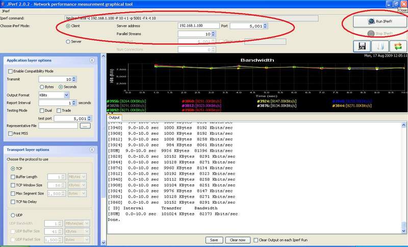 Por favor, configure como na imagem (claro que substituindo o seu endereço IP Uma vez que a configuração inicial é feito, clique em Executar Iperf.: