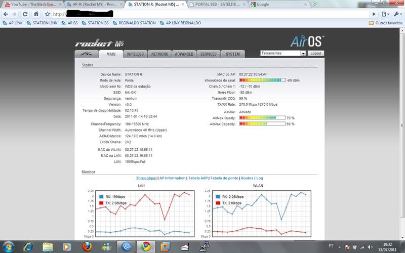Coloque também imagem da rocket AP, e status das conexões, AP e Station info.