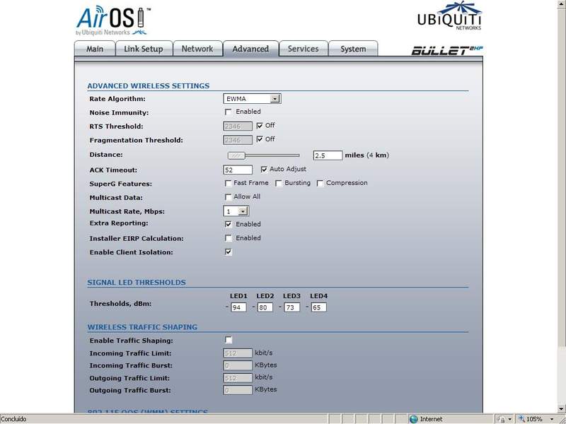 Que sorte a tua amigo! Isso é um sonho! Qual a potência que usa ai e qual fonte colocou? Quantos metros de cabo usa do bullet para a fonte PoE? Mas interessante que seu ACK tá um pouco alto (71). Deixou automático ou fixou? seu cliente mais distante está a quantos km? suas respostas servirão para q eu compare aqui e veja o q tem de errado com meu sistema. Agradeço desde já. Se não for pedir demais, me mande um print das config de seu 'link setup" e do "advanced". Muito Obrigado!