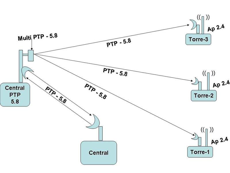 3-Torres recebem o link via 5.8ghz da Central 5.8 e repassam para os clientes via 2.4 ghz
