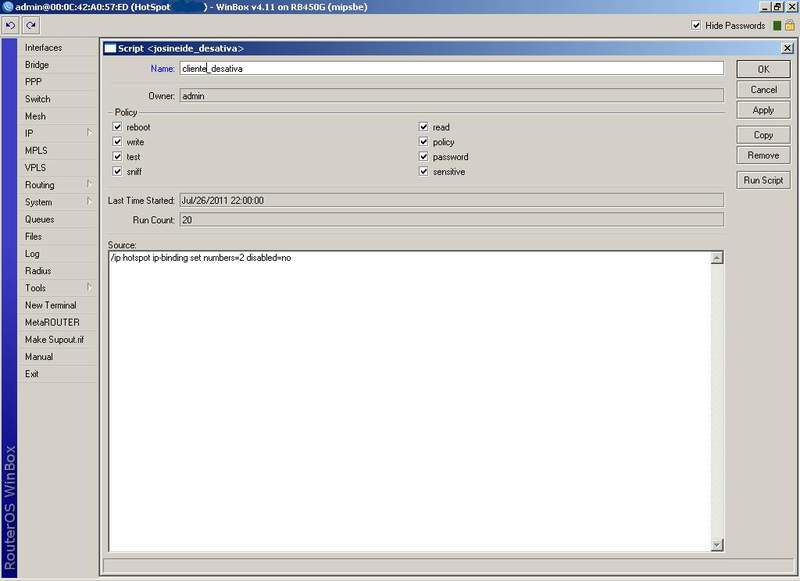 Segundo, você cria um script para Ativar o cliente que está na aba ip-binding do hotspot.