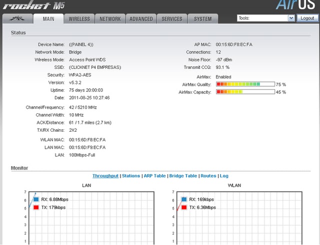 mas posso le dizer que numa bullet.58 coloco cerca de 50 clientes simultaneos a velocidade de 300k ou seja na sua rocket por ser 2x2 ( nao sei seu cliente ) deveria no minimo ser o dobro .....porem nao recomendo usar no clinete 2x2 ..... o melhor proveito para as rocket seria vc usar algums clinetes na horizontal e outros na vertical com 1 unico rado rocket....entende.....