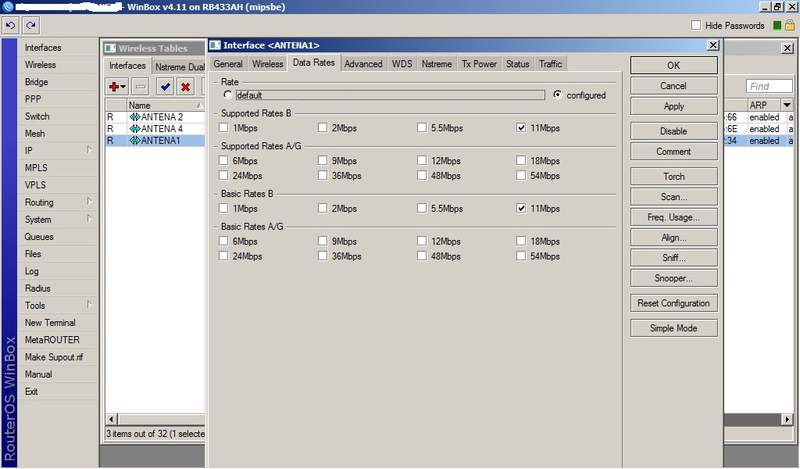 obrigado a todos pelas dicas. estou efetuando as mudanças de acordo com as indicações de cada um do forun e observando a melhoria. Rx/Tx em 11mb. "Mesmo assim alguns clientes se conectam com velocidade de 1mb". modifiquei o Preamble para "long" antes estava em "both"