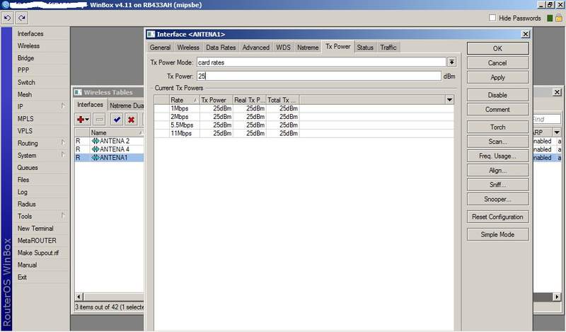 tx/rx ccq como esta veja um canal com frequencia menos poluida ja tentou usar a potencia do cartão em default .