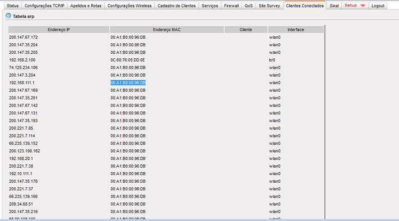 Nesta tabela é para aparecer somente o ip do roteador correto , mais aparece ips externos , isso no meu pensamento é que esta tando erro na hora do cliente navegar , por exempllo no site da uol , que ele nao consegue entrar em sua caixa de email e tb em alguns sites