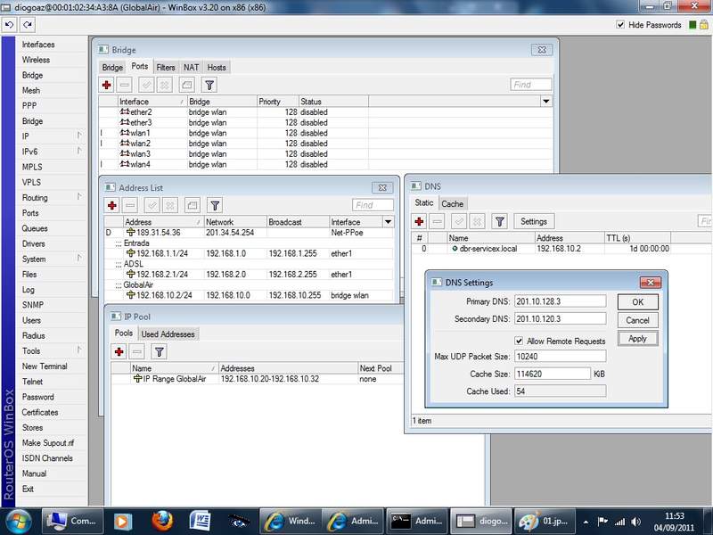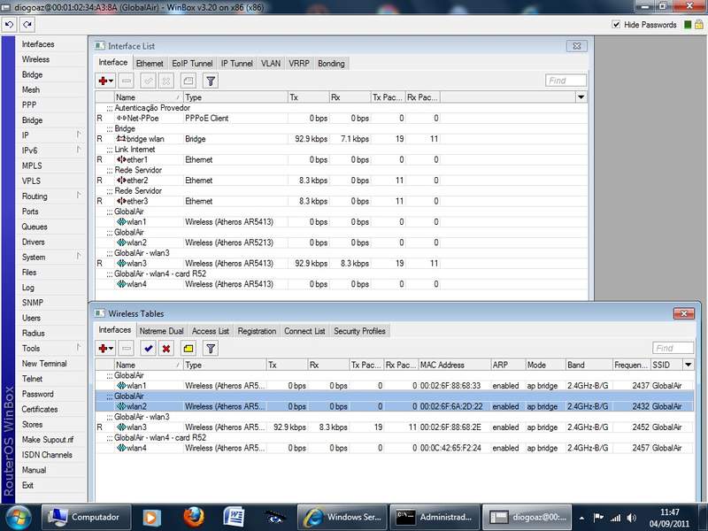 tenho um PC AP utilizando o MK 3.20 saindo para internet normalmente, conectando 6 equipamentos via Wireless + cabeada Server 2003.