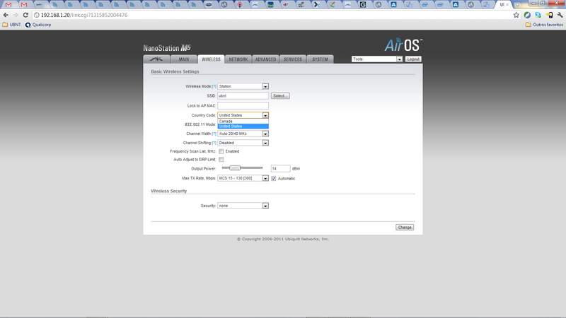 Algum dos colegas já se deparou com algum equipamento da UBNT sufixo US, como NSM5-US? Compramos um lote de Nano Station M5 essa semana e para nossa surpresa fomos agraciados com a tal versão. Esses dispositivos estão travados na faixa de 5150-5250 mhz e 5725-5850 mhz que são as permitidas no Canadá e EUA sem a necessidade de utilização do DFS onde pelo o que entendi não está plenamente funcional no AirOS. Aqui já utilizamos a faixa de 5250-5350 e 5470-5725 mhz e acredito que vários outros provedores da lista também. Parece que a UBNT prometeu para semana que vem algum firmware possibilitando a utilização de tais faixas com fazíamos anteriormente com o devices não "US".