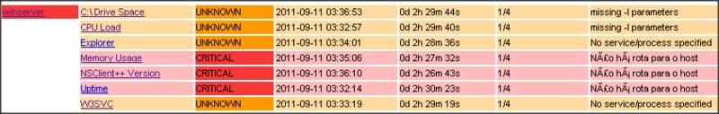 Ele reconhece o windows certinho, porém os serviços a serem monitorados ficam em unknown ou critical, como mostra a imagem a abaixo: