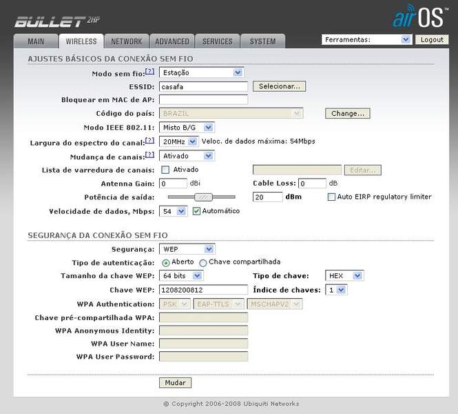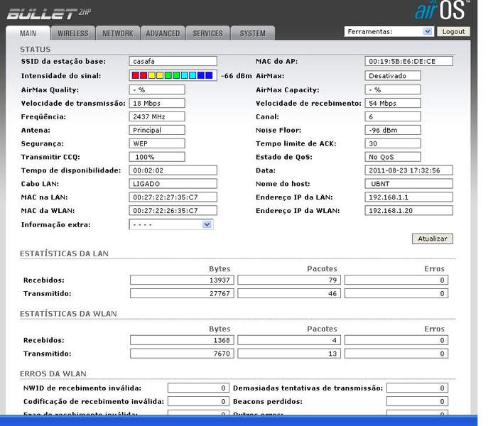 já no bullet vc vai colocar ele com station e modo router em network ....