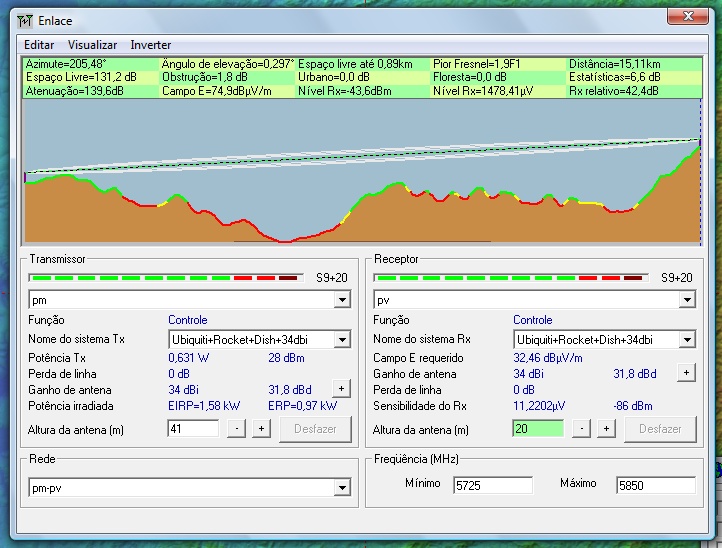 olha com a antena de 34 vai ser muita coisa por que e so 15 km a de 30 ja dava ,mas a primeira torre voce vai conseguir colocar a antena a 41 metros de altura mesmo ?